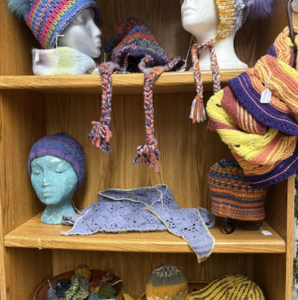 Over 60 local artisans featured in the gift shop. Everything from Goat Soap, wood crafted items, etched glasses, handcrafted jewelry, clothing, baby items, artwork, knit mittens, caps, scarves, shawls and much more.